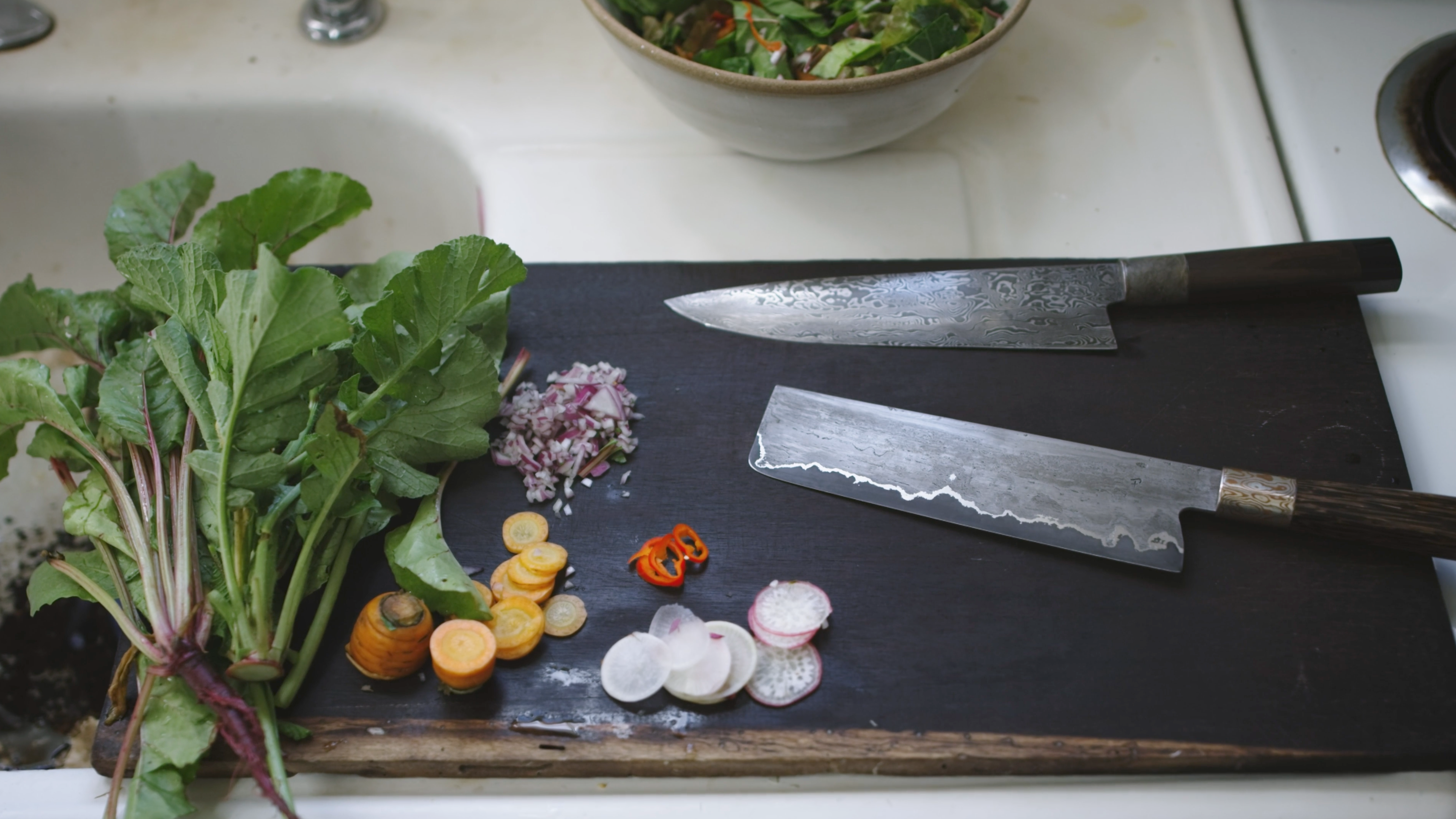 John appreciates the history and culture surrounding blacksmithing and the unique opportunities to experiment and infuse these practices with bleeding-edge technology and material science. But he makes these tools to serve people first. His knives and his practice celebrate living, through shared experience and social connection. They are created with life in mind: for developing lasting memories of cooked meals with friends, barbeques, holiday meals, and the daily practices of working professional chefs.