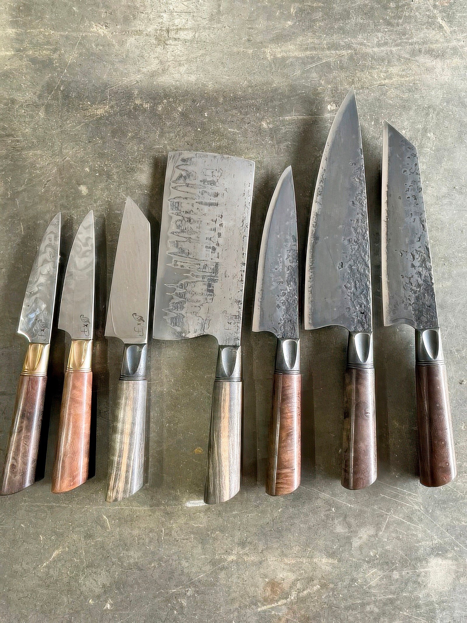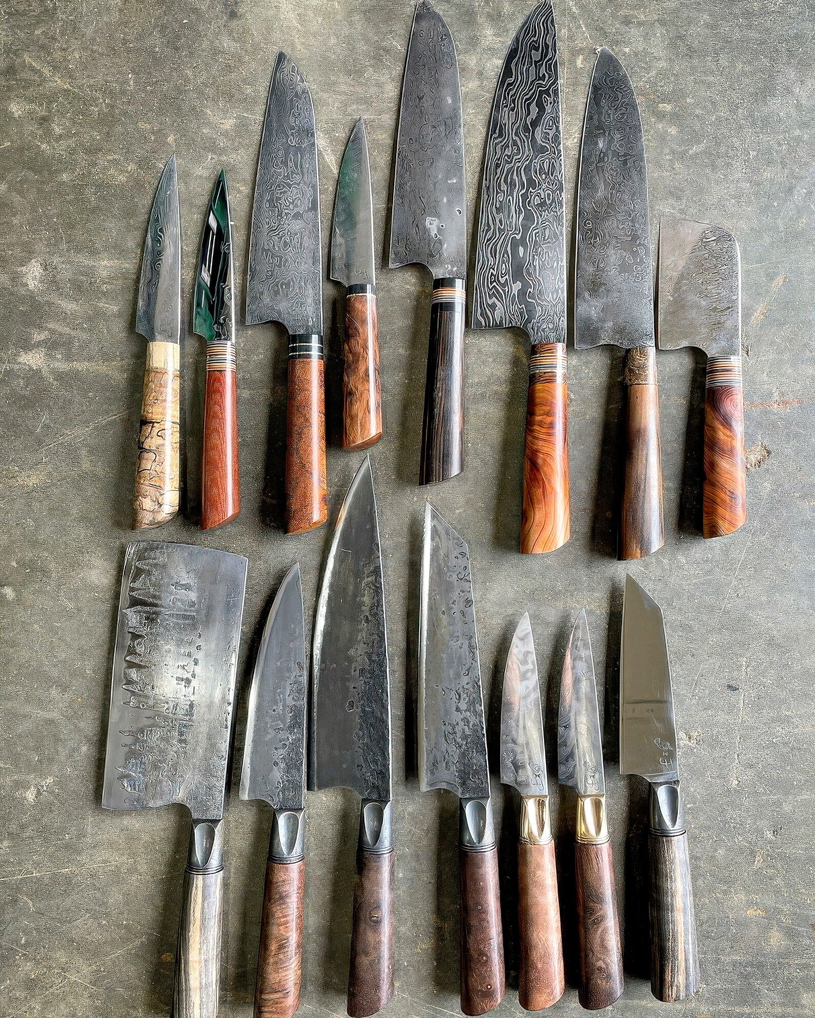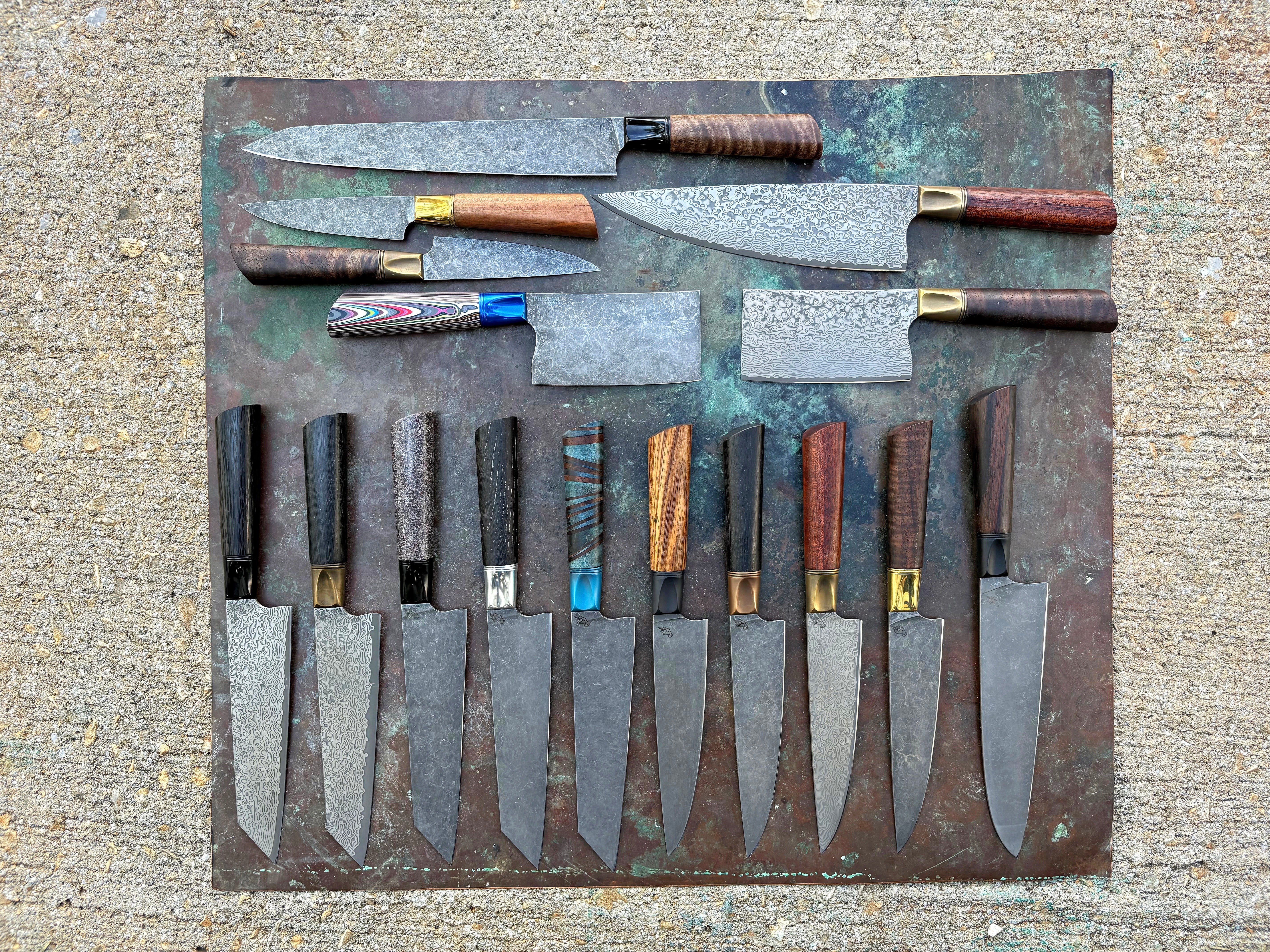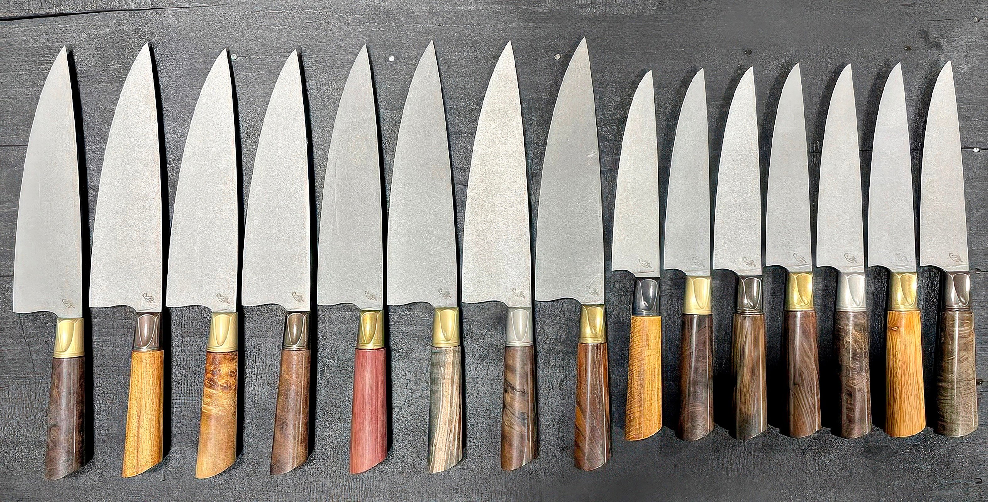 This is a curated selection of kitchen knives I have made in the past that have found their homes.