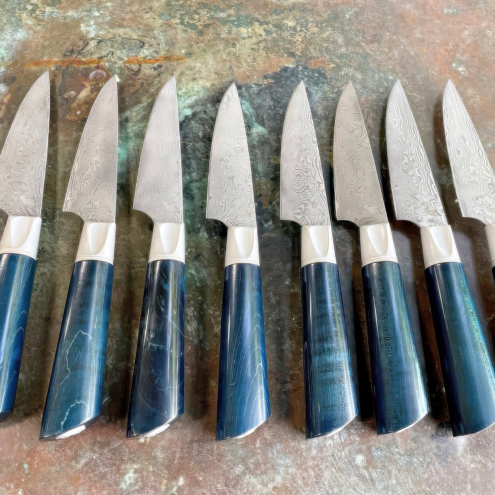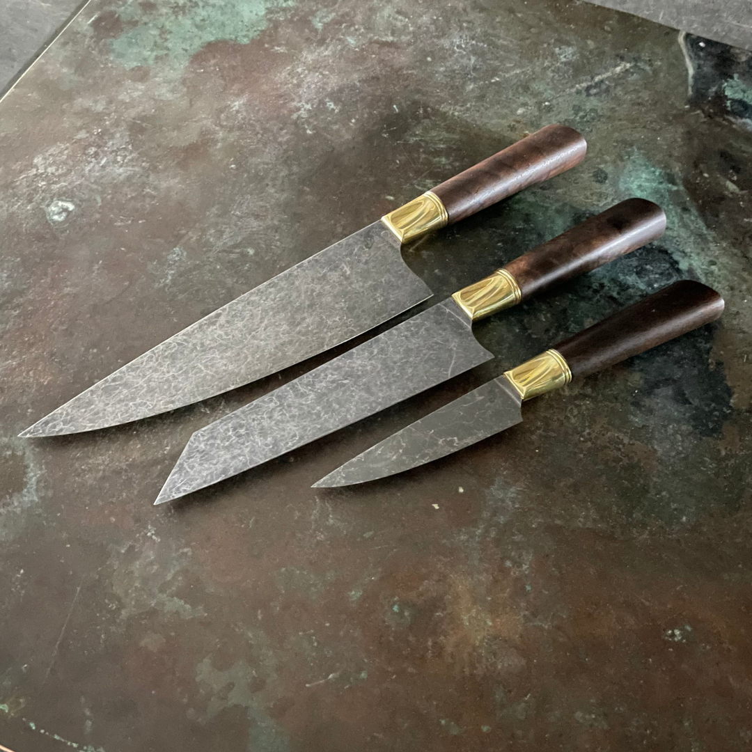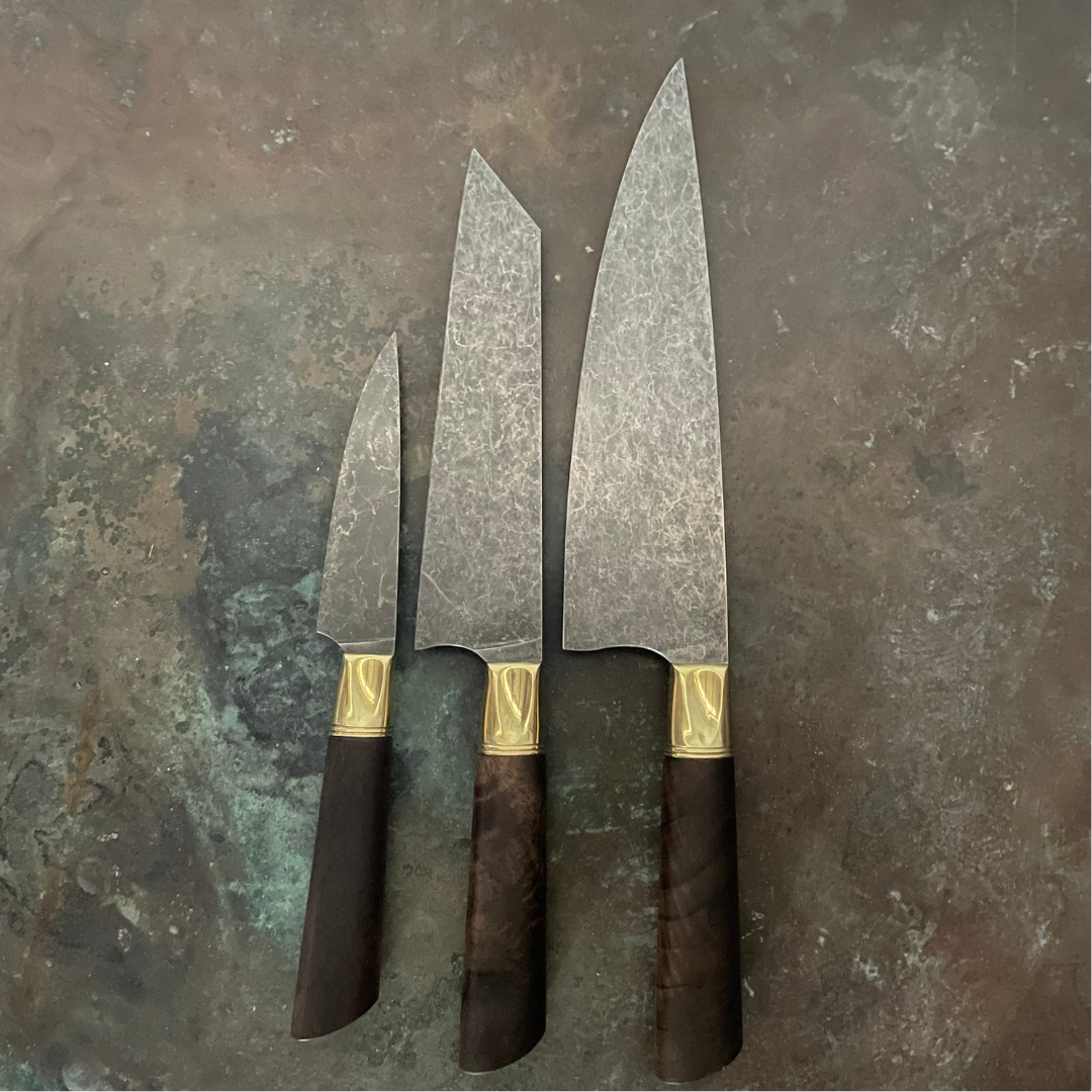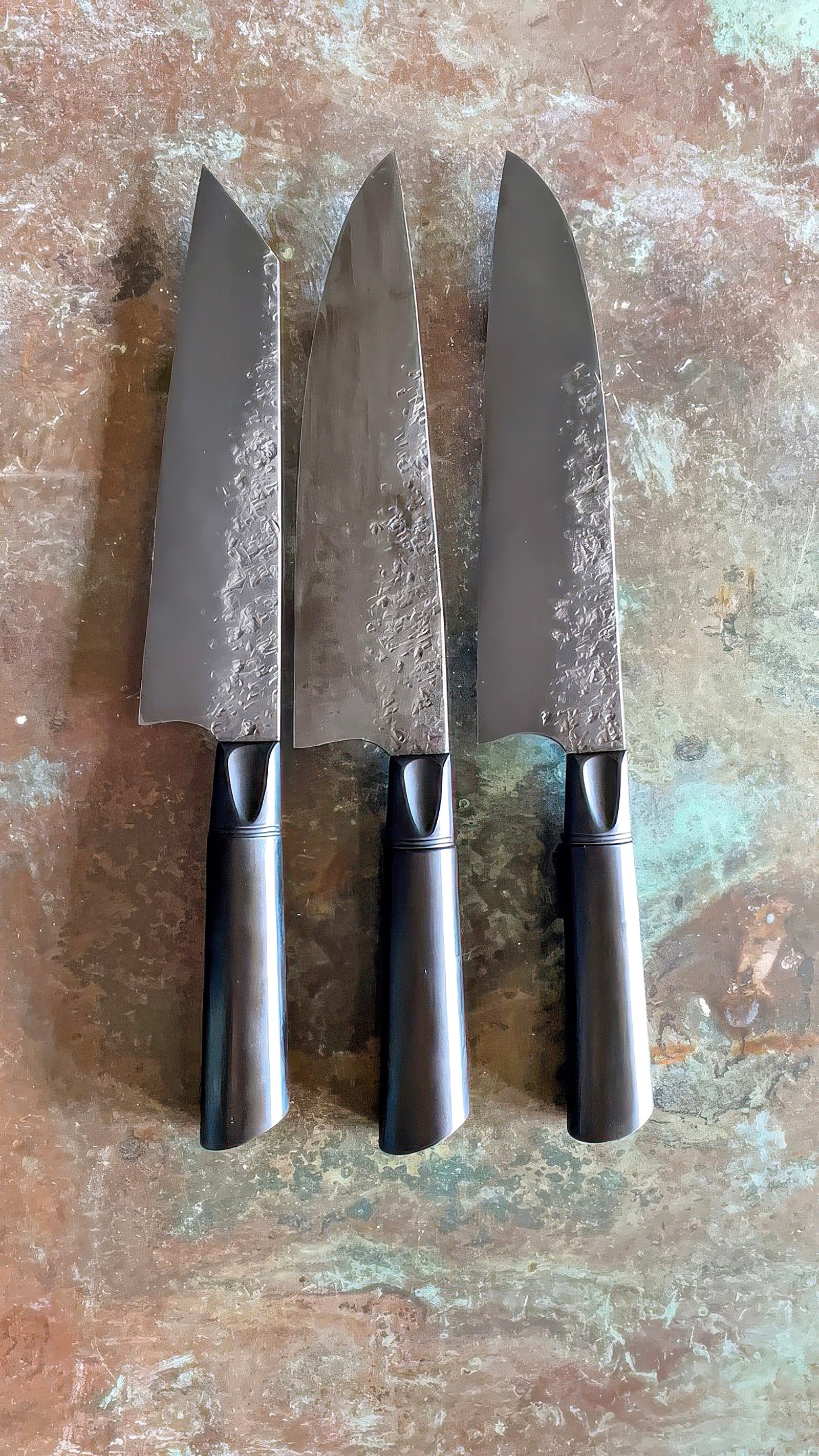 This is a curated selection of kitchen knives I have made in the past that have found their homes.